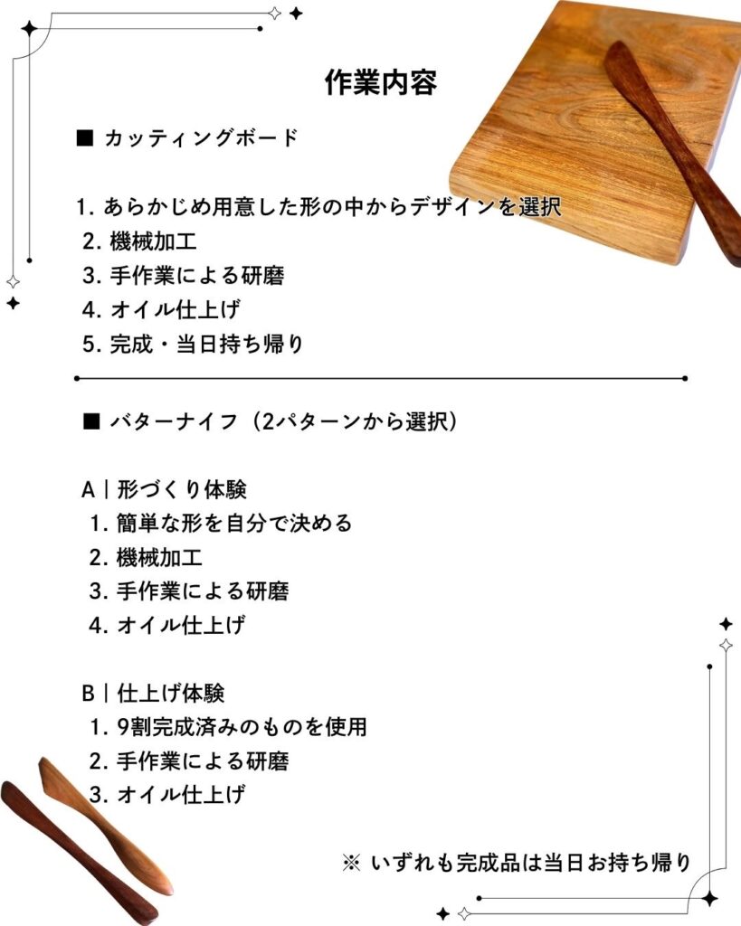 カッティングボード+バターナイフ を作るワークショップを開催します。